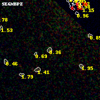 Black segments are analyzed here. Roll mouse over color images to view segments. Best viewed in a wide browser window (1200 pixels or more). Download SED & P(z) plots to view larger versions.