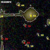 Black segments are analyzed here. Roll mouse over color images to view segments. Best viewed in a wide browser window (1200 pixels or more). Download SED & P(z) plots to view larger versions.