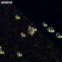 Black segments are analyzed here. Roll mouse over color images to view segments. Best viewed in a wide browser window (1200 pixels or more). Download SED & P(z) plots to view larger versions.
