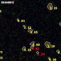 Black segments are analyzed here. Roll mouse over color images to view segments. Best viewed in a wide browser window (1200 pixels or more). Download SED & P(z) plots to view larger versions.