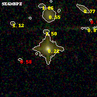 Black segments are analyzed here. Roll mouse over color images to view segments. Best viewed in a wide browser window (1200 pixels or more). Download SED & P(z) plots to view larger versions.