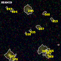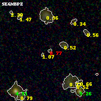 Black segments are analyzed here. Roll mouse over color images to view segments. Best viewed in a wide browser window (1200 pixels or more). Download SED & P(z) plots to view larger versions.