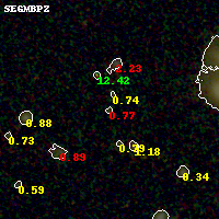 Black segments are analyzed here. Roll mouse over color images to view segments. Best viewed in a wide browser window (1200 pixels or more). Download SED & P(z) plots to view larger versions.