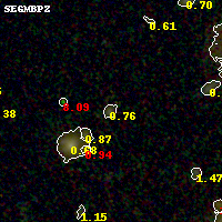 Black segments are analyzed here. Roll mouse over color images to view segments. Best viewed in a wide browser window (1200 pixels or more). Download SED & P(z) plots to view larger versions.