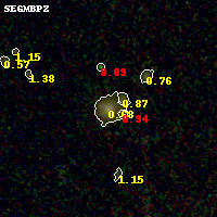 Black segments are analyzed here. Roll mouse over color images to view segments. Best viewed in a wide browser window (1200 pixels or more). Download SED & P(z) plots to view larger versions.