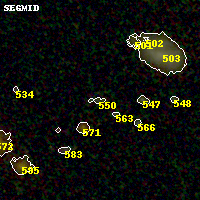 Black segments are analyzed here. Roll mouse over color images to view segments. Best viewed in a wide browser window (1200 pixels or more). Download SED & P(z) plots to view larger versions.