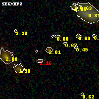 Black segments are analyzed here. Roll mouse over color images to view segments. Best viewed in a wide browser window (1200 pixels or more). Download SED & P(z) plots to view larger versions.