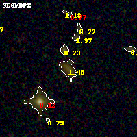 Black segments are analyzed here. Roll mouse over color images to view segments. Best viewed in a wide browser window (1200 pixels or more). Download SED & P(z) plots to view larger versions.