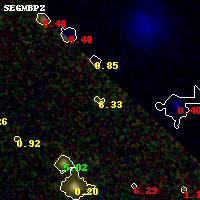 Black segments are analyzed here. Roll mouse over color images to view segments. Best viewed in a wide browser window (1200 pixels or more). Download SED & P(z) plots to view larger versions.