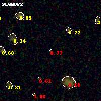 Black segments are analyzed here. Roll mouse over color images to view segments. Best viewed in a wide browser window (1200 pixels or more). Download SED & P(z) plots to view larger versions.