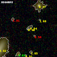 Black segments are analyzed here. Roll mouse over color images to view segments. Best viewed in a wide browser window (1200 pixels or more). Download SED & P(z) plots to view larger versions.