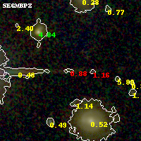 Black segments are analyzed here. Roll mouse over color images to view segments. Best viewed in a wide browser window (1200 pixels or more). Download SED & P(z) plots to view larger versions.
