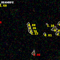 Black segments are analyzed here. Roll mouse over color images to view segments. Best viewed in a wide browser window (1200 pixels or more). Download SED & P(z) plots to view larger versions.