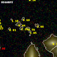 Black segments are analyzed here. Roll mouse over color images to view segments. Best viewed in a wide browser window (1200 pixels or more). Download SED & P(z) plots to view larger versions.