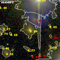 Black segments are analyzed here. Roll mouse over color images to view segments. Best viewed in a wide browser window (1200 pixels or more). Download SED & P(z) plots to view larger versions.