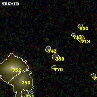 Black segments are analyzed here. Roll mouse over color images to view segments. Best viewed in a wide browser window (1200 pixels or more). Download SED & P(z) plots to view larger versions.