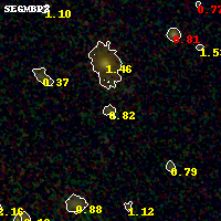 Black segments are analyzed here. Roll mouse over color images to view segments. Best viewed in a wide browser window (1200 pixels or more). Download SED & P(z) plots to view larger versions.