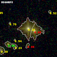 Black segments are analyzed here. Roll mouse over color images to view segments. Best viewed in a wide browser window (1200 pixels or more). Download SED & P(z) plots to view larger versions.
