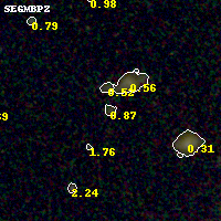 Black segments are analyzed here. Roll mouse over color images to view segments. Best viewed in a wide browser window (1200 pixels or more). Download SED & P(z) plots to view larger versions.