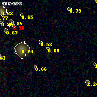 Black segments are analyzed here. Roll mouse over color images to view segments. Best viewed in a wide browser window (1200 pixels or more). Download SED & P(z) plots to view larger versions.