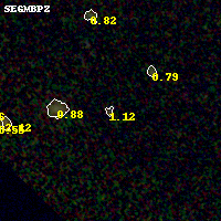 Black segments are analyzed here. Roll mouse over color images to view segments. Best viewed in a wide browser window (1200 pixels or more). Download SED & P(z) plots to view larger versions.