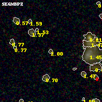 Black segments are analyzed here. Roll mouse over color images to view segments. Best viewed in a wide browser window (1200 pixels or more). Download SED & P(z) plots to view larger versions.