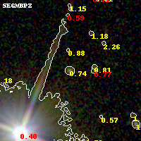 Black segments are analyzed here. Roll mouse over color images to view segments. Best viewed in a wide browser window (1200 pixels or more). Download SED & P(z) plots to view larger versions.