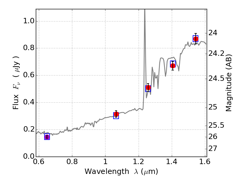 Object #786   x,y = (3049, 2240)   RA, Dec = (02:31:44.280, -44:18:31.32) = (37.93450, -44.30870)   BPZ = 2.325 [2.106--2.632]   type = 7.50 (SB1_B10 - Scd_B10)   stellarity = 0.14   chisq2 = 0.05   ODDS = 0.70   z_cluster = 0.284