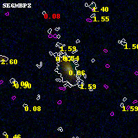 Object #1074 x,y = (3153, 3562) RA, Dec = (02:32:14.664, -44:19:38.28) = (38.06110, -44.32730) BPZ = 0.058 [0.040--1.906] type = 4.20 (Ell4_A_0 - ES0_B10) chisq2 = 0.00 ODDS = 0.14 z_cluster = 0.284