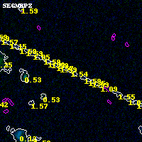 Object #1205 x,y = (3699, 3510) RA, Dec = (02:32:11.616, -44:19:41.52) = (38.04840, -44.32820) BPZ = 1.545 [0.240--3.008] type = 9.50 (SB3_B10 - SB2_B10) chisq2 = 0.00 ODDS = 0.10 z_cluster = 0.284