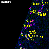 Object #1233 x,y = (959, 3496) RA, Dec = (02:32:26.928, -44:19:42.24) = (38.11220, -44.32840) BPZ = 0.818 [0.532--4.489] type = 2.00 (Ell6_A_0) chisq2 = 0.00 ODDS = 0.17 z_cluster = 0.284