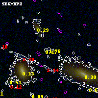 Object #1320 x,y = (2656, 3456) RA, Dec = (02:32:17.448, -44:19:44.76) = (38.07270, -44.32910) BPZ = 1.761 [0.790--2.682] type = 11.00 (SB11_A_0_l) chisq2 = 0.10 ODDS = 0.25 z_cluster = 0.284