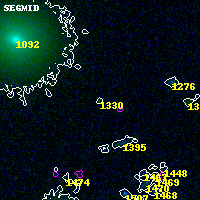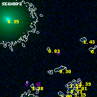 Object #1330 x,y = (1444, 3450) RA, Dec = (02:32:24.216, -44:19:45.12) = (38.10090, -44.32920) BPZ = 0.828 [0.393--6.634] type = 2.00 (Ell6_A_0) chisq2 = 0.00 ODDS = 0.09 z_cluster = 0.284