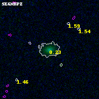 Object #1362 x,y = (1148, 3413) RA, Dec = (02:32:25.872, -44:19:47.28) = (38.10780, -44.32980) BPZ = 0.232 [0.175--1.104] type = 3.00 (Ell5_A_0) chisq2 = 0.00 ODDS = 0.64 z_cluster = 0.284