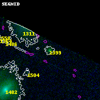 Object #1399 x,y = (4448, 3403) RA, Dec = (02:32:07.416, -44:19:48.00) = (38.03090, -44.33000) BPZ = 0.461 [0.348--1.765] type = 2.70 (Ell5_A_0 - Ell6_A_0) chisq2 = 0.00 ODDS = 0.56 z_cluster = 0.284