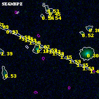 Object #1523 x,y = (4074, 3333) RA, Dec = (02:32:09.504, -44:19:51.96) = (38.03960, -44.33110) BPZ = 1.534 [0.187--3.083] type = 9.30 (SB2_B10 - SB3_B10) chisq2 = 0.00 ODDS = 0.10 z_cluster = 0.284
