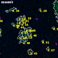 Object #1535 x,y = (1523, 3340) RA, Dec = (02:32:23.784, -44:19:51.60) = (38.09910, -44.33100) BPZ = 1.403 [0.131--3.074] type = 9.20 (SB2_B10 - SB3_B10) chisq2 = 0.00 ODDS = 0.10 z_cluster = 0.284