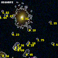 Object #1572 x,y = (2048, 3336) RA, Dec = (02:32:20.856, -44:19:51.96) = (38.08690, -44.33110) BPZ = 0.177 [0.073--3.213] type = 8.70 (SB2_B10 - SB1_B10) chisq2 = 0.79 ODDS = 0.18 z_cluster = 0.284