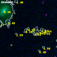 Object #1676 x,y = (4445, 3261) RA, Dec = (02:32:07.440, -44:19:56.28) = (38.03100, -44.33230) BPZ = 0.297 [0.118--3.662] type = 6.40 (Sbc_B10 - Scd_B10) chisq2 = 0.00 ODDS = 0.08 z_cluster = 0.284