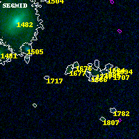 Object #1677 x,y = (4436, 3254) RA, Dec = (02:32:07.488, -44:19:56.64) = (38.03120, -44.33240) BPZ = 0.386 [0.193--3.802] type = 3.00 (Ell5_A_0) chisq2 = 0.02 ODDS = 0.14 z_cluster = 0.284