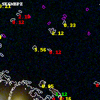 Object #1740 x,y = (2507, 3232) RA, Dec = (02:32:18.288, -44:19:58.08) = (38.07620, -44.33280) BPZ = 0.121 [0.060--0.890] type = 10.50 (SB11_A_0_l - SB3_B10) chisq2 = 1.57 ODDS = 0.50 z_cluster = 0.284