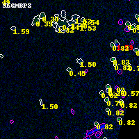 Object #1807 x,y = (4484, 3183) RA, Dec = (02:32:07.224, -44:20:00.96) = (38.03010, -44.33360) BPZ = 0.445 [0.187--4.935] type = 3.00 (Ell5_A_0) chisq2 = 0.12 ODDS = 0.08 z_cluster = 0.284