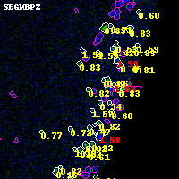 Object #2074 x,y = (4479, 2997) RA, Dec = (02:32:07.248, -44:20:12.12) = (38.03020, -44.33670) BPZ = 0.825 [0.538--5.282] type = 2.00 (Ell6_A_0) chisq2 = 0.00 ODDS = 0.15 z_cluster = 0.284