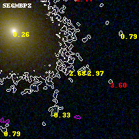Object #2167 x,y = (1925, 2951) RA, Dec = (02:32:21.528, -44:20:15.00) = (38.08970, -44.33750) BPZ = 2.676 [0.060--2.945] type = 11.00 (SB11_A_0_l) chisq2 = 0.22 ODDS = 0.36 z_cluster = 0.284