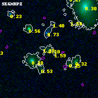 Object #2296 x,y = (1075, 2909) RA, Dec = (02:32:26.280, -44:20:17.52) = (38.10950, -44.33820) BPZ = 0.101 [0.075--3.424] type = 5.70 (Sbc_B10 - ES0_B10) chisq2 = 0.00 ODDS = 0.07 z_cluster = 0.284