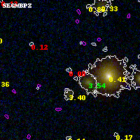 Object #2454 x,y = (2687, 2814) RA, Dec = (02:32:17.280, -44:20:23.28) = (38.07200, -44.33980) BPZ = 0.077 [0.023--2.563] type = 10.50 (SB11_A_0_l - SB3_B10) chisq2 = 5.19 ODDS = 0.49 z_cluster = 0.284