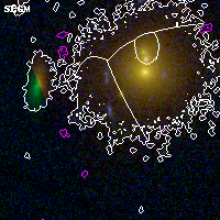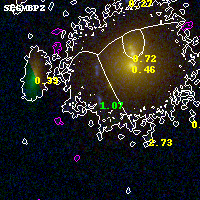 Object #2470 x,y = (1362, 2704) RA, Dec = (02:32:24.696, -44:20:29.76) = (38.10290, -44.34160) BPZ = 1.075 [1.011--2.926] type = 7.70 (SB1_B10 - Scd_B10) chisq2 = 0.01 ODDS = 0.96 z_cluster = 0.284