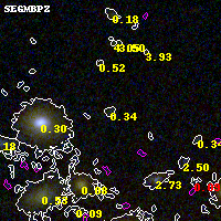Object #2500 x,y = (2285, 2782) RA, Dec = (02:32:19.536, -44:20:25.08) = (38.08140, -44.34030) BPZ = 0.342 [0.112--3.329] type = 10.70 (SB11_A_0_l - SB3_B10) chisq2 = 0.15 ODDS = 0.32 z_cluster = 0.284