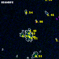 Object #2504 x,y = (4289, 2822) RA, Dec = (02:32:08.304, -44:20:22.92) = (38.03460, -44.33970) BPZ = 1.403 [0.139--3.153] type = 8.50 (SB2_B10 - SB1_B10) chisq2 = 0.00 ODDS = 0.09 z_cluster = 0.284