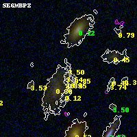 Object #2630 x,y = (1758, 2810) RA, Dec = (02:32:22.464, -44:20:23.64) = (38.09360, -44.33990) BPZ = 3.504 [0.169--3.673] type = 10.60 (SB11_A_0_l - SB3_B10) chisq2 = 0.39 ODDS = 0.49 z_cluster = 0.284